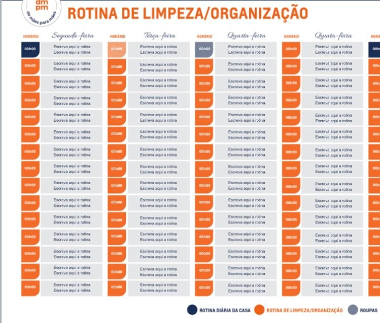 Você terá acesso há vários arquivos prontos como cardápios com listas, levantamentos de tarefas, frequência de tarefas, entre outros. Além disso, tem cronogramas de limpeza para você modelar e personalizar de acordo com a realidade da sua casa.